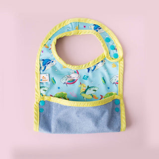 The Smocket combines a bib and smock with a crumb-catching pocket, perfect for mealtimes and messy play. A must-have for your little one!