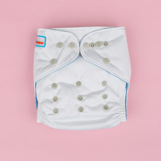 Each and every one of the snaps goes through at least 2 layers of fabric to increase padding to make the snaps as secure as possible. All the snaps on the front of the diapers have a hidden layer behind the fabric. The snaps that attach the diaper to the insert also go through 2 layers of fabric.