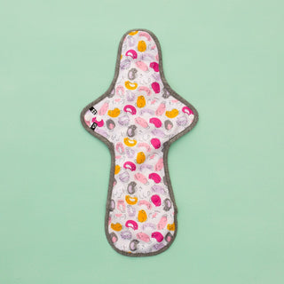 Reusable menstrual pads with wings and non-slip silicon dots, available for heavy periods to light leaks—absorbent, comfortable, and leak-proof.