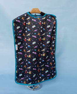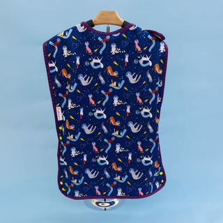 Protect clothing with the Super Smock! Waterproof adult bib with adjustable fit, bamboo terry backing, and spill-catching pockets for added comfort & easiness.