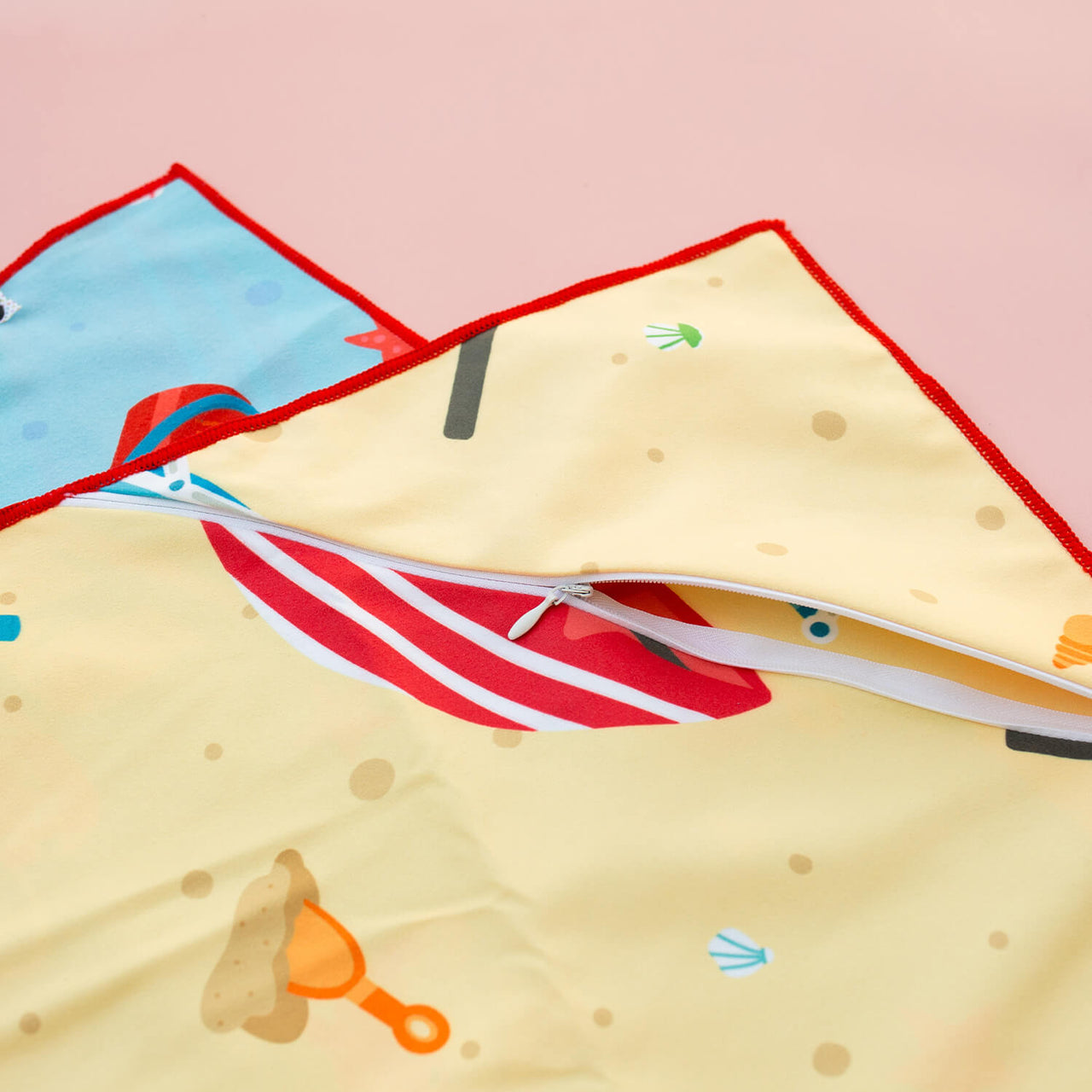 This towel can hold 5x its weight in water and the JAWsome material dries 10x faster than traditional cotton. So no matter how drenched your kiddo manages to get (themselves or you) at the splash pad, these towels can handle it fast. Plus, they are buttery soft, quick dry, and sand resistant, so you can leave the beach where it belongs.