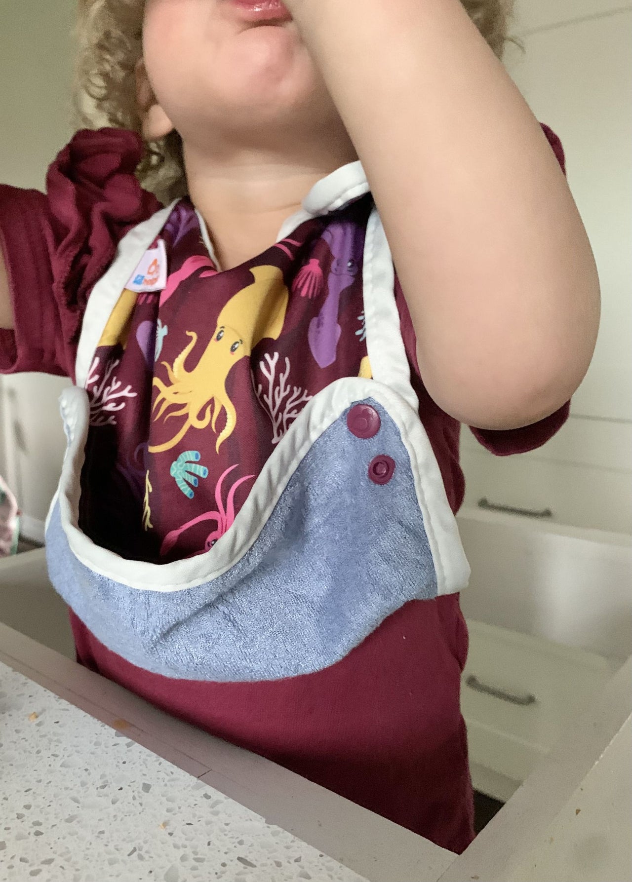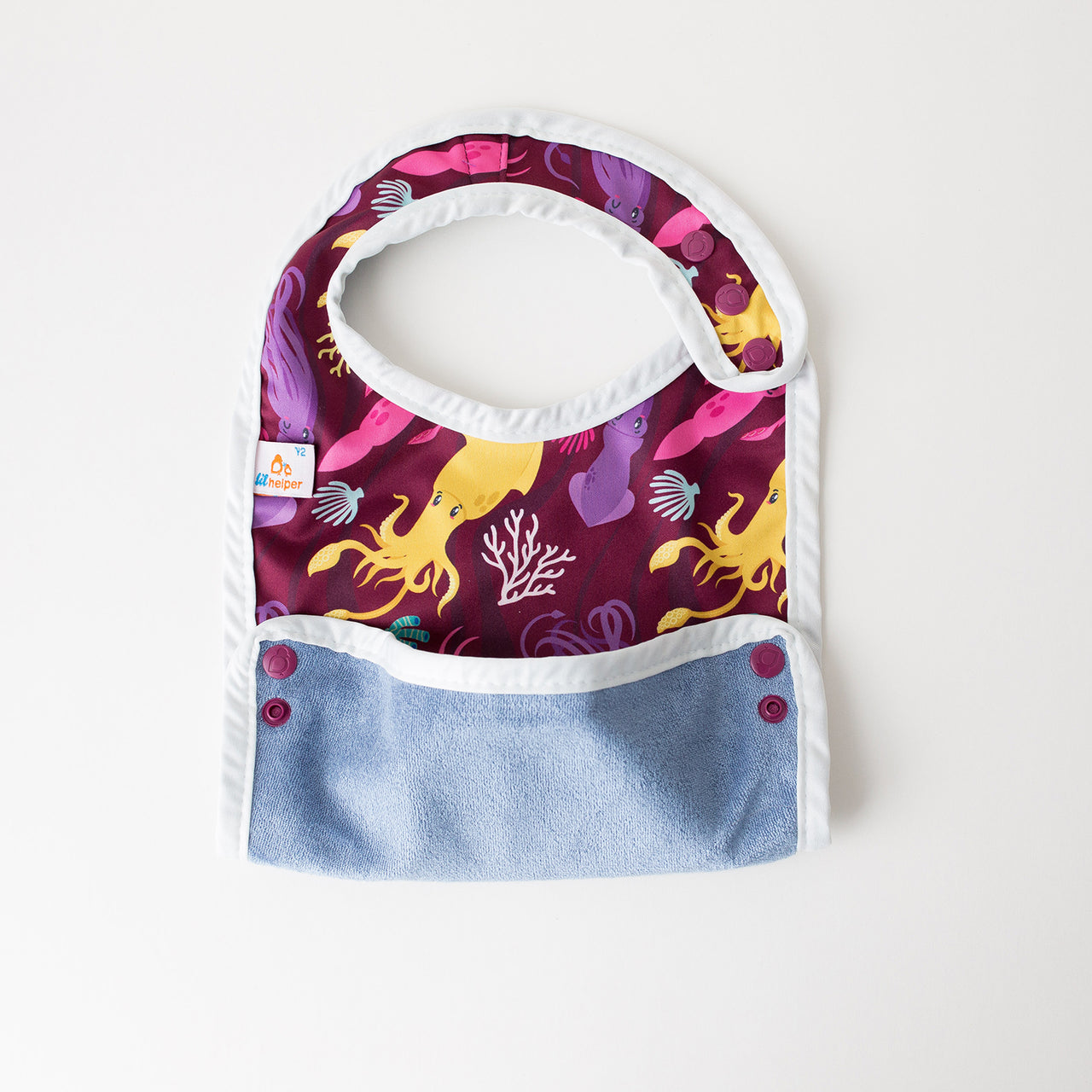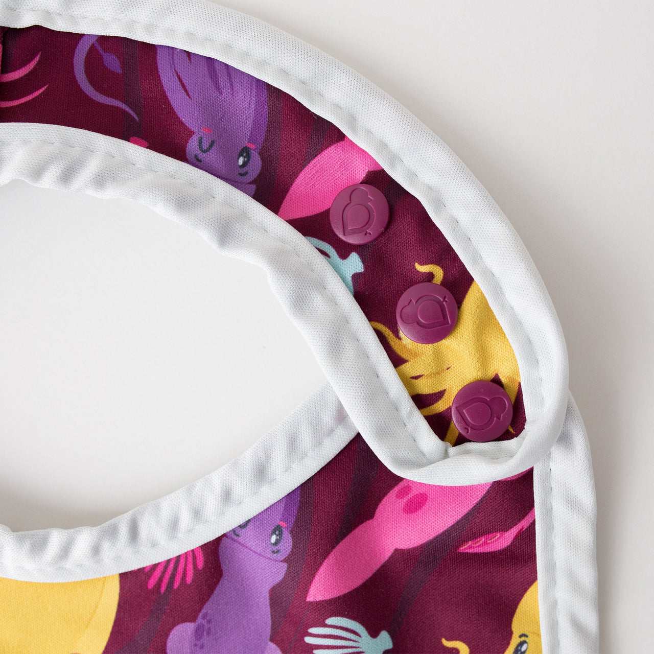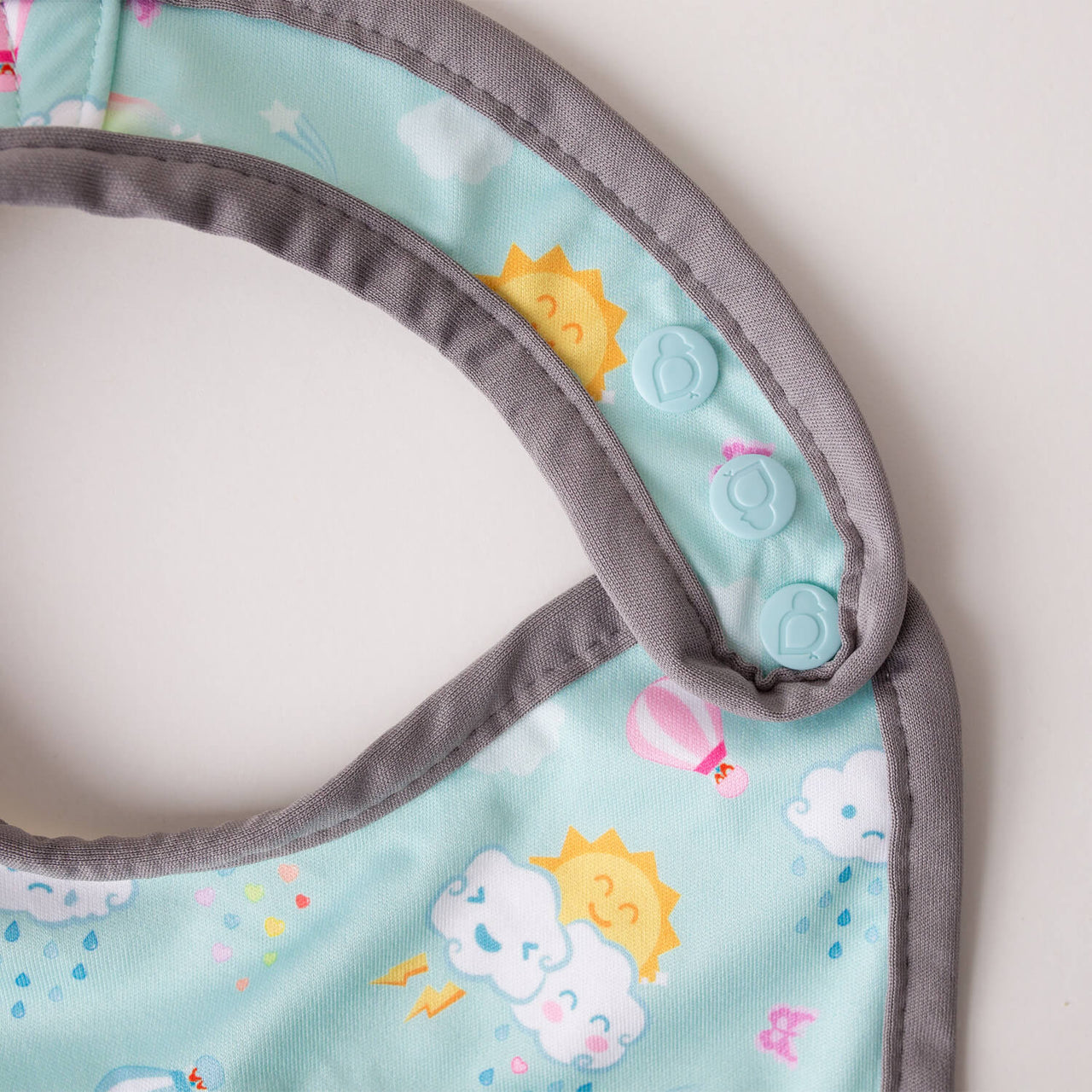 Use the PUL side as a protective apron for messy art projects or outdoor play, adding extra value beyond mealtime. The soft bamboo terry side provides absorbency and comfort against your baby’s skin. Adjustable snaps ensure a perfect fit from newborn to toddler, adapting to your child’s growth and activities. A must-have for snacks, solids introduction, and everyday mess control.