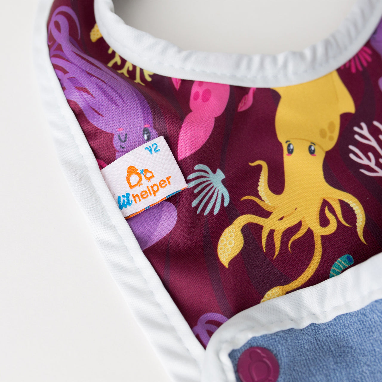 Made from stain-resistant materials that wash and dry like new—no more wrinkled or worn-out bibs after multiple washes. The snap closures hold up better than velcro, resisting wear and tear for hundreds of uses. Machine washable and dryer safe for effortless cleanup, making it ideal for busy parents and toddlers alike.