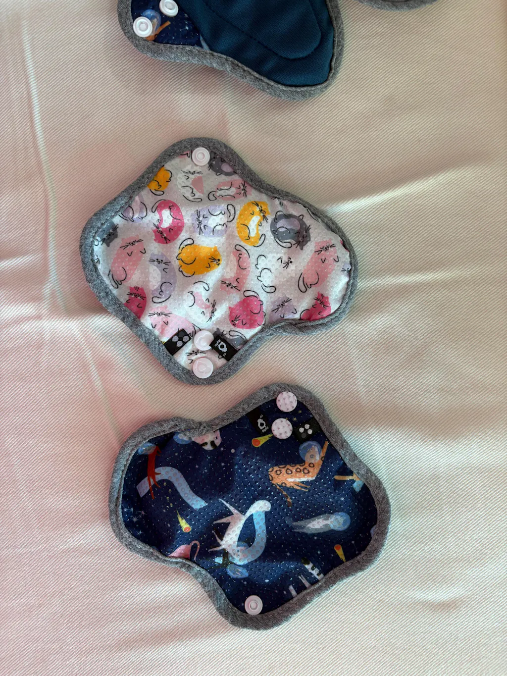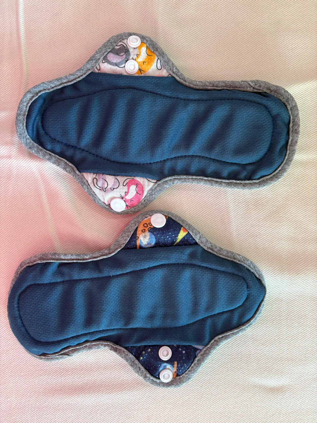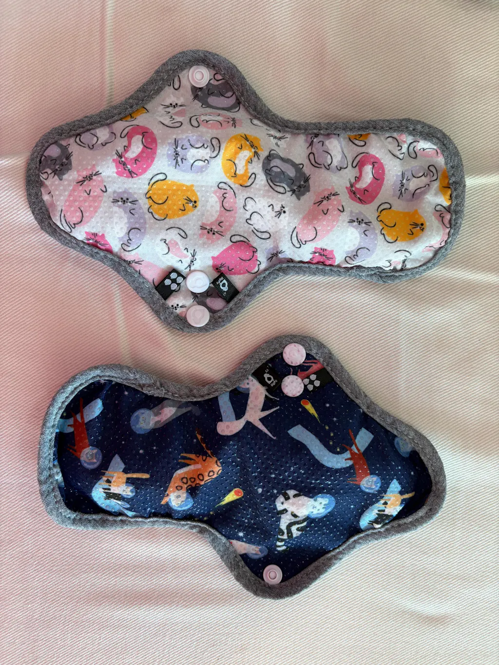 I have very heavy periods and I tried Modibodi, but I had to change them too often, which was annoying bc it’s underwear. I absolutely LOVE these! They are so thick; it’s perfect! For me, long ones don’t do anything bc then it just leaks through the sides, so I love how short these are! They’re also really easy to change! I found the regulars good for light days. The grippy dots work really well too! And I can’t get over the adorable patterns! The only thing I wound change about them is to make the widest part in the middle of the pads.